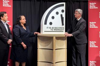 NAJBLIŽE IKAD Svijet na rubu propasti: Sat sudnjeg dana sada je na 85 sekundi do ponoći Express Simboličan pokazatelj globalnih prijetnji čovječanstvu, pomaknut je na 85 sekundi do ponoći, najbliže u svojoj povijesti. Ponoć na tom satu predstavlja globalnu katastrofu