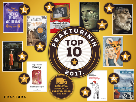 Kad Fraktura danas objavio svoj TOP 10 najčitanijih naslova, onda je to u najmanju ruku zanimljiv trenutak. Kad je riječ o TOP 10 za cijelu jednu godinu, primjerice za 2017., stvar naprosto mami da se barem "škicne" o čemu je riječ. A na kraju priče Frakturina ekipa smisli još i ponudu svojih 10 najčitanijih naslova za proteklu godinu po sistemu "kupi jednu, drugu – onu jeftiniju – uzmi u pola cijene". A ljestvica ide ovako: