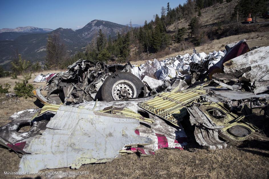 (FILES) A picture taken and released on April 13, 2015 by the French Interior minister shows wreckage collected from the crash site of the German Airbus A320 of the low-cost carrier Germanwings stored at the Col de Mariaud in Le Vernet. March 24, 2025 will mark the tenth anniversary of the Germanwings crash, in which a suicidal pilot crashed a plane into a mountainside, killing all 150 on board. The ill-fated plane took off from Barcelona and was headed to Dusseldorf in Germany when German co-pilot Andreas Lubitz, 27, drove it into the ground on March 24, 2015.,Image: 977501510, License: Rights-managed, Restrictions: RESTRICTED TO EDITORIAL USE - MANDATORY CREDIT "AFP PHOTO / DICOM / FRENCH INTERIOR MINISTRY / YVES MALENFER /HANDOUT / " - NO MARKETING NO ADVERTISING CAMPAIGNS - DISTRIBUTED AS A SERVICE TO CLIENTS