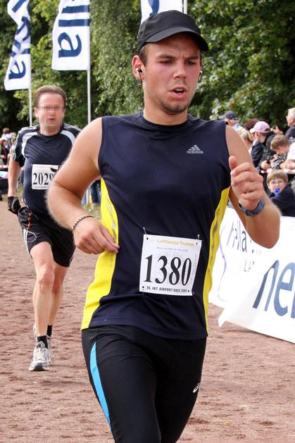 Picture released on March 27, 2015 shows the co-pilot of Germanwings flight 4U9525 Andreas Lubitz taking part in the Airport Hamburg 10-mile run on September 13, 2009 in Hamburg, northern Germany. Andreas Lubitz, the co-pilot who French authorities say appeared to deliberately crash a Germanwings flight, was a life-long flying enthusiast with no apparent psychological problems or terrorist links. into the French Alps, killing all 150 aboard, hid a serious illness from the airline, prosecutors said Friday amid reports he was severely depressed.,Image: 233220127, License: Rights-managed, Restrictions: RESTRICTED TO EDITORIAL USE - MANDATORY CREDIT "AFP PHOTO / FOTO TEAM MUELLER " - NO MARKETING NO ADVERTISING CAMPAIGNS - DISTRIBUTED AS A SERVICE TO CLIENTS, ***