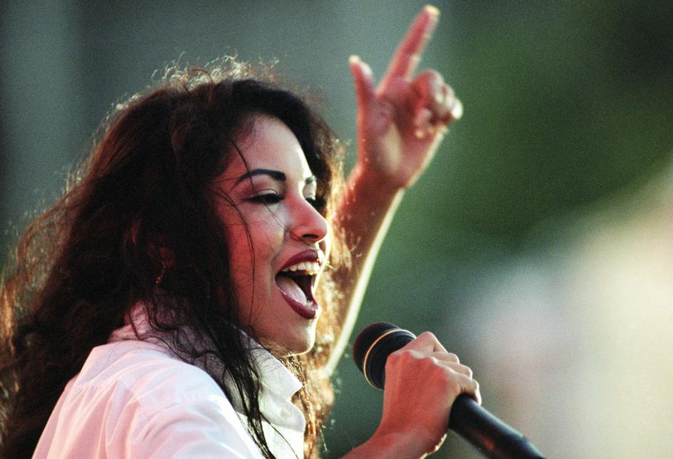 EXCLUISVE: April 24, 1994 - San Antonio, Texas, United States: Selena performs at Hemisfair Plaza. Tejano star Selena Quintanilla was gunned down by the president of her fan club, Yolanda Saldivar, in a motel room on March 31, 1995, but her music legacy continues to thrive, winning over thousands of new fans, many of them young girls born after she died. The film based on her life launched the career of Jennifer Lopez.,Image: 226201833, License: Rights-managed, Restrictions: - EXCLUSIVE - SPECIAL RATES APPLY!!, Model Release: no