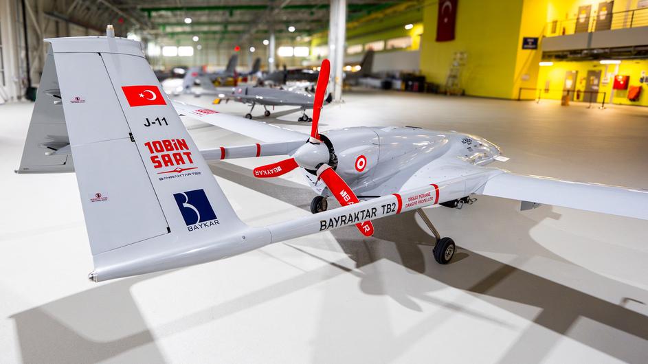 Handout photo shows Bayraktar TB2, an unmanned fighter jet developed by The Baykar factory, one of the country's leading arms manufacturers in on February 14, 2025, in Istanbul, Turkey. Italy's Leonardo and Turkey's Baykar announced on March 6, 2025, they were setting up a joint venture to produce unmanned aerial vehicles (UAV), as defense companies scramble to respond to the surge in European military spending. The deal aims to address Europe's weakness in the drone industry and will take advantage of a European UAV market that the two companies estimated at $100 billion over the next 10 years. Europe has a gap in unmanned technologies... and in complicated times like the one we are living in it is fundamental to guarantee global security," Leonardo Chief Executive Roberto Cingolani told a press conference. Baykar Chairman Selçuk Bayraktar, the son-in-law of Turkish President Tayyip Erdogan, said the deal was an "opportunity to build aerial supremacy", given drones' key role in the future. Handout,Image: 973507708, License: Rights-managed, Restrictions: ***