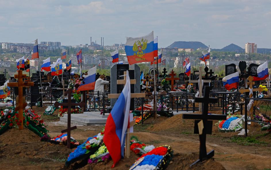 Flags fly over the graves of Russian service members killed in the course of Russia-Ukraine conflict, at a cemetery on the outskirts of Donetsk, a Russian-controlled city of Ukraine, April 27, 2025. REUTERS/Alexander Ermochenko