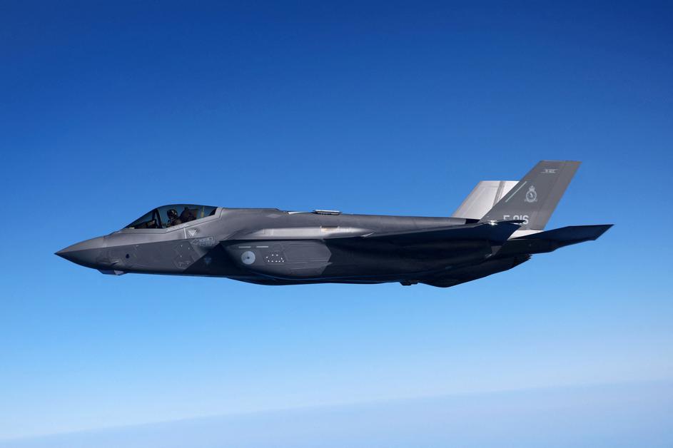 A Dutch F-35 fighter jet is seen after being refuelled by a Multinational MRTT Unit in the air during NATO's Ramstein Flag exercise above Denmark starting from Eindhoven Netherlands, Denmark April 2, 2025. REUTERS/Piroschka van de Wouw