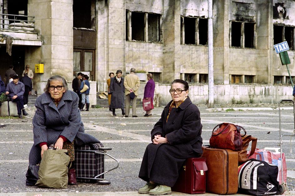 Bosnian women wait for the convoy leaving Sarajevo, on November 11, 1992 as several hundred residents of the Bosnian capital were evacuated by the Red Cross for Belgrade. AFP PHOTO PATRICK BAZ,Image: 282728135, License: Rights-managed, Restrictions: , Model Release: no