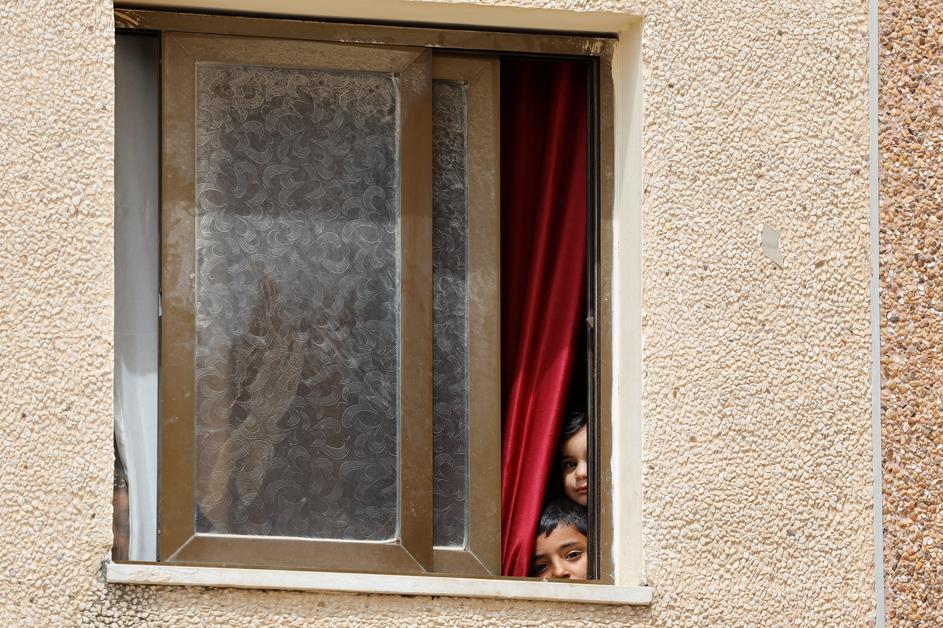 Children play amidst the rubble of houses in Jabalia refugee camp
