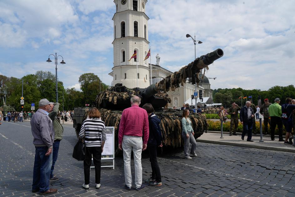 People look at military equipment displayed before the inauguration of the German 45th Armored Brigade "Lietuva" in Vilnius, Lithuania May 22, 2025. REUTERS/Ints Kalnins