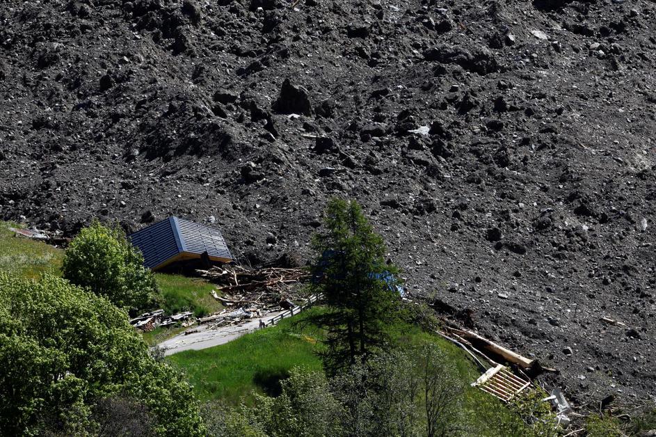 A few remaining houses are seen after a massive rock and ice slide covered most of the village of Blatten, Switzerland May 29, 2025. REUTERS/Stefan Wermuth Photo: Stefan Wermuth/REUTERS