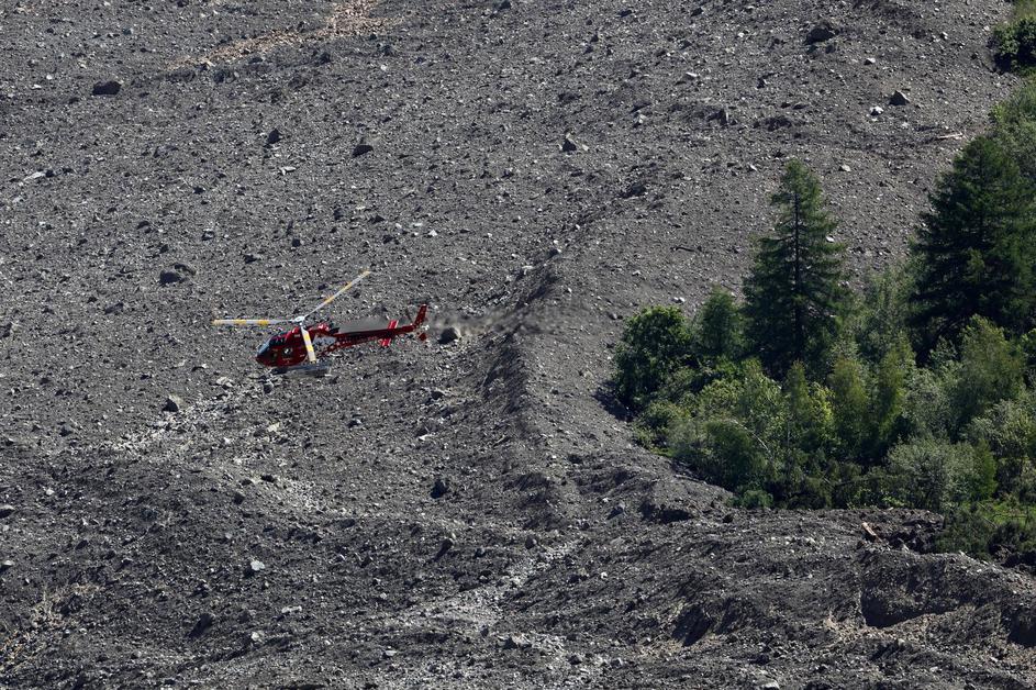A helicopter flies over debris and dust from a crumbling glacier that partially collapsed and tumbled onto the village of Blatten, Switzerland is seen on May 29, 2025. REUTERS/Stefan Wermuth Photo: Stefan Wermuth/REUTERS