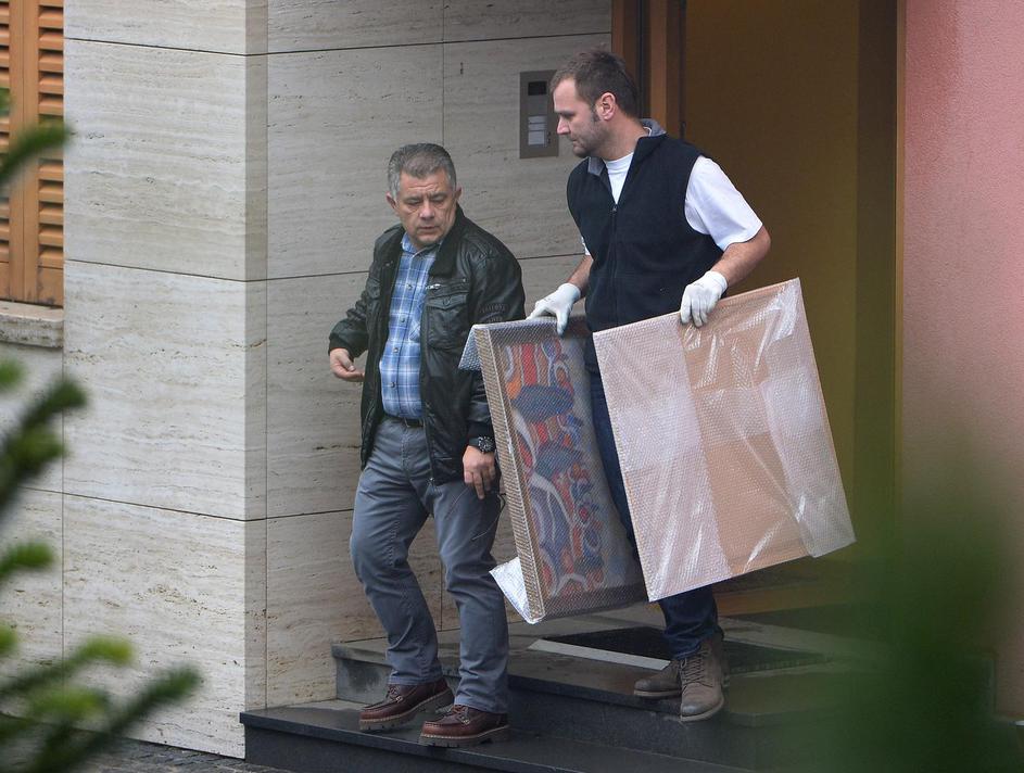 21.11.2013., Zagreb - Policija i djelatnici iznose umjetnine iz vile na posjedu Nadana Vidosevica. Vidosevic je osumnjicen da je u aferi Remorker iz Hrvatske gospodarske komore sa suradnicima izvukao 32 milijuna kuna, a jednomjesecni istrazni zatvor mu je odredila sutkinja istrage kako ne bi utjecao na svjedoke. rPhoto: Marko Prpic/PIXSELL