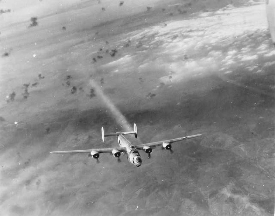 The Consolidated B-24H Liberator, used by the 90th Bomb Group during World War II, was a heavy bomber known for its distinctive 'sharkmouth' nose art. It was part of the U.S. Army Air Forces' efforts in the Pacific Theater, conducting bombing raids over e