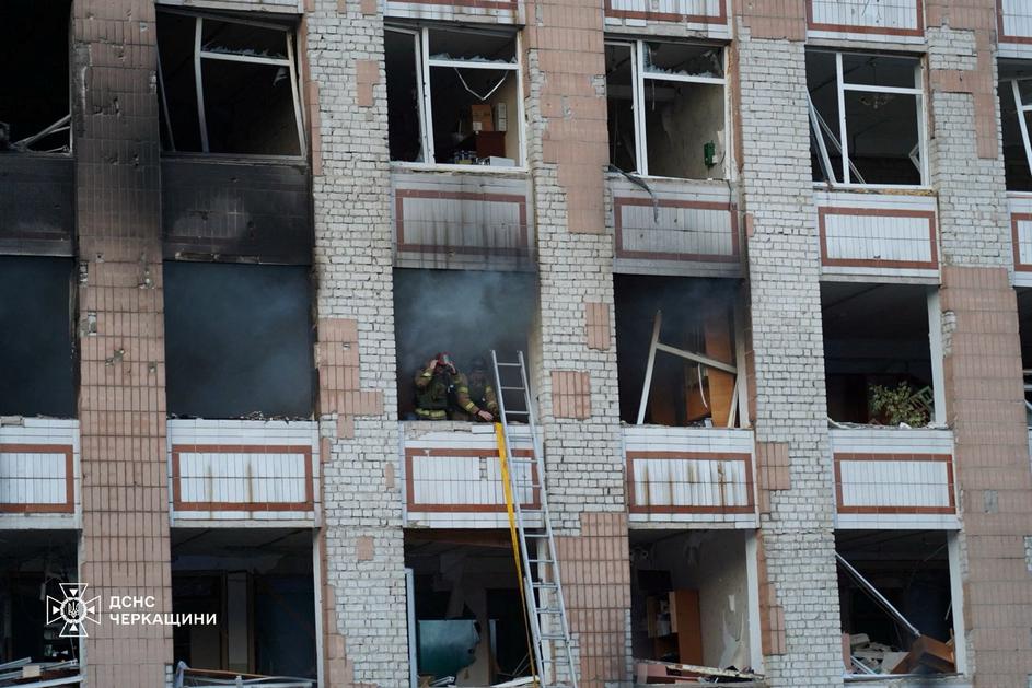 Firefighters work at the site of an apartment building damaged during Russian drone and missile strikes, amid Russia's attack on Ukraine, in the town of Smila, Cherkasy region, Ukraine June 29, 2025. Press service of the State Emergency Service of Ukraine in Cherkasy region/Handout via REUTERS ATTENTION EDITORS - THIS IMAGE HAS BEEN SUPPLIED BY A THIRD PARTY. DO NOT OBSCURE LOGO.