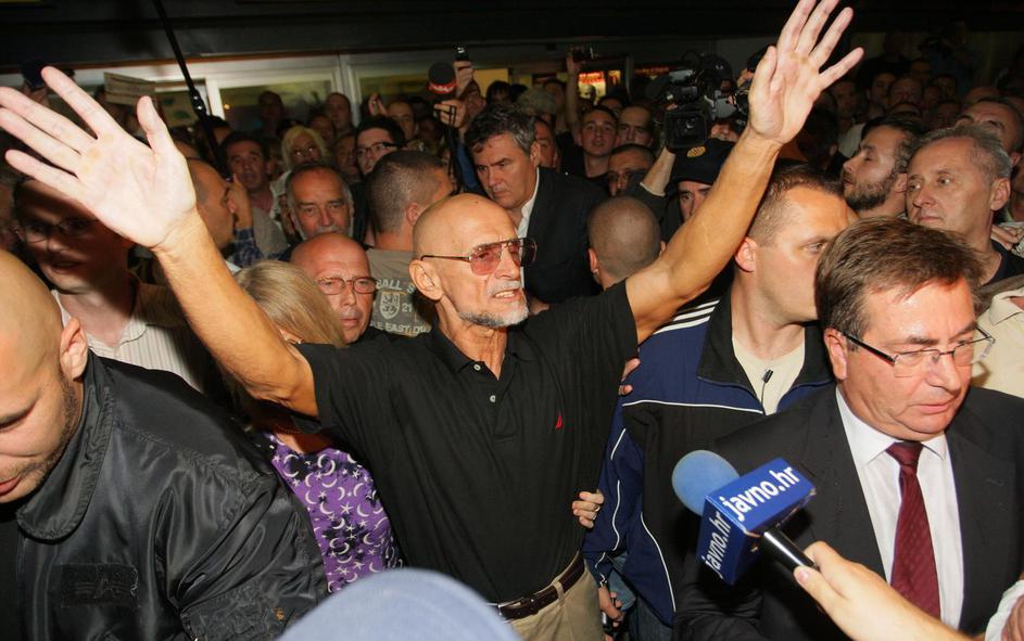 24.07.2008., Zagreb - Docek Zvonka Busica u Zracnoj luci Zagreb. Supruga, prijatelji i nekoliko stotina gradjana doslo je zazeljeti dobrodoslicu emigrantu koji je odsluzio 32 godine zatvora u SAD-u zbog otmice zrakoplova i smrti policajca1976. rPhoto: Zeljko Lukunic/PIXSELL