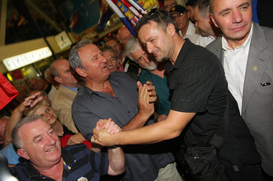 24.07.2008., Zagreb - Docek Zvonka Busica u Zracnoj luci Zagreb. Supruga, prijatelji Mate Bulic i Marko Perkovic Thompson te nekoliko stotina gradjana doslo je zazeljeti dobrodoslicu emigrantu koji je odsluzio 32 godine zatvora u SAD-u zbog otmice zrakoplova i smrti policajca1976. rPhoto: Zeljko Lukunic/PIXSELL