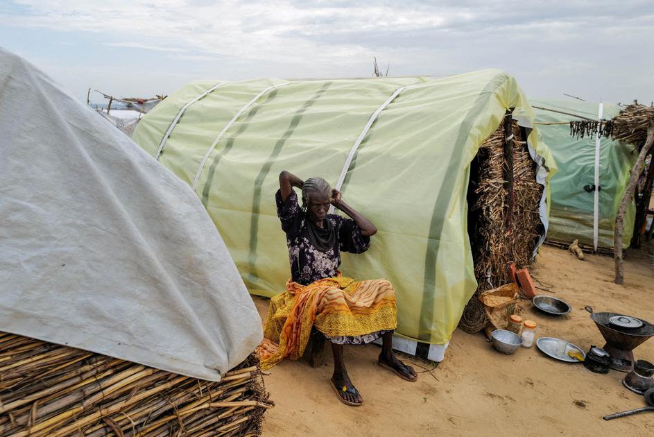 FILE PHOTO: Keltouma Bachir Adam, 70, a Sudanese woman who fled the conflict in Sudan's Darfur region, combs her hair beside a makeshift shelter in Adre, Chad August 3, 2023. REUTERS/Zohra Bensemra/File Photo