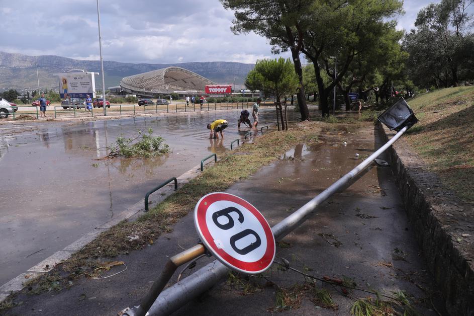 08.07.2025. Split - Snazno nevrijeme praceno obilnom kisom, jakim vjetrom i tucom jutros je zahvatilo dijelove grada. Na stadionu Poljud ostecen je dio krovne konstrukcije. Photo: Ivo Cagalj/PIXSELL