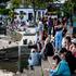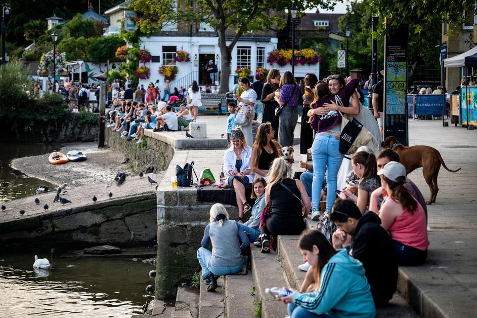 Dublin, Ireland - 13th August 2025 - An outdoor coffee dock with seating and parasols on the Boardwalk along the River Liffey in Dublin city centre as the Irish capital experiences high temperatures and humidity