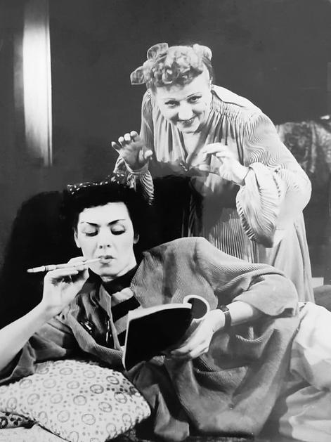 Eliza Gerner i Bela Krleža u predstavi Zanat gospođe Warren, drama G. B. Shawa izvedena u zagrebačkom HNK 1950.