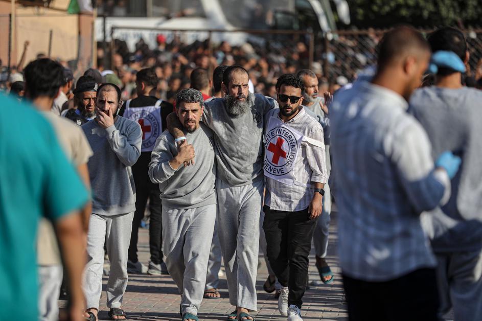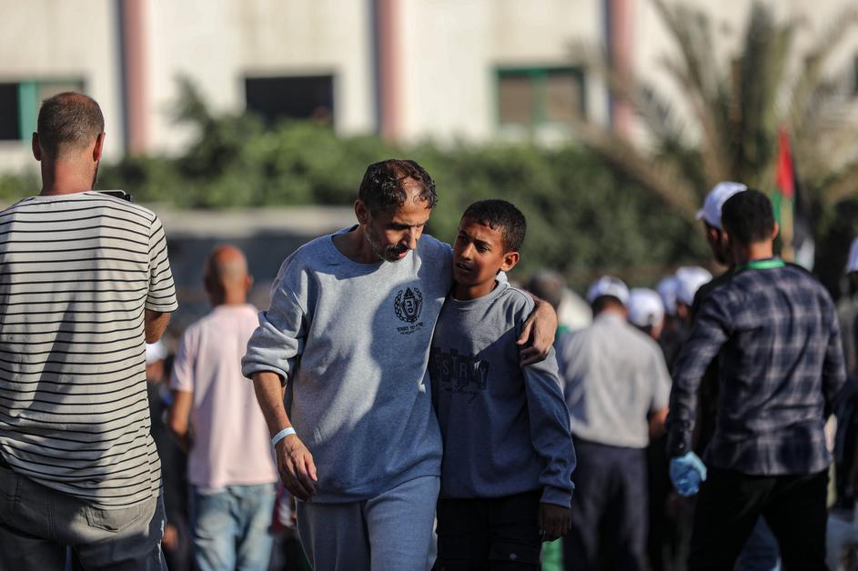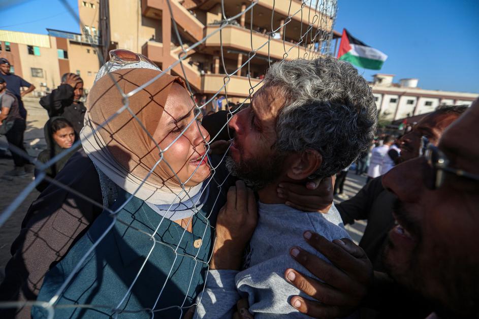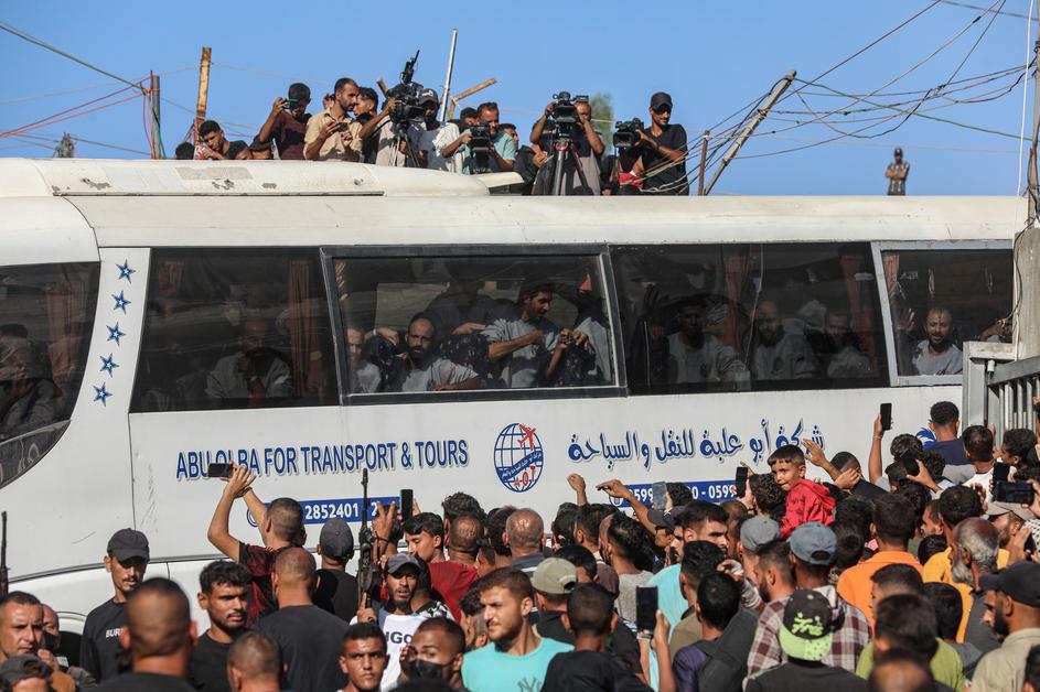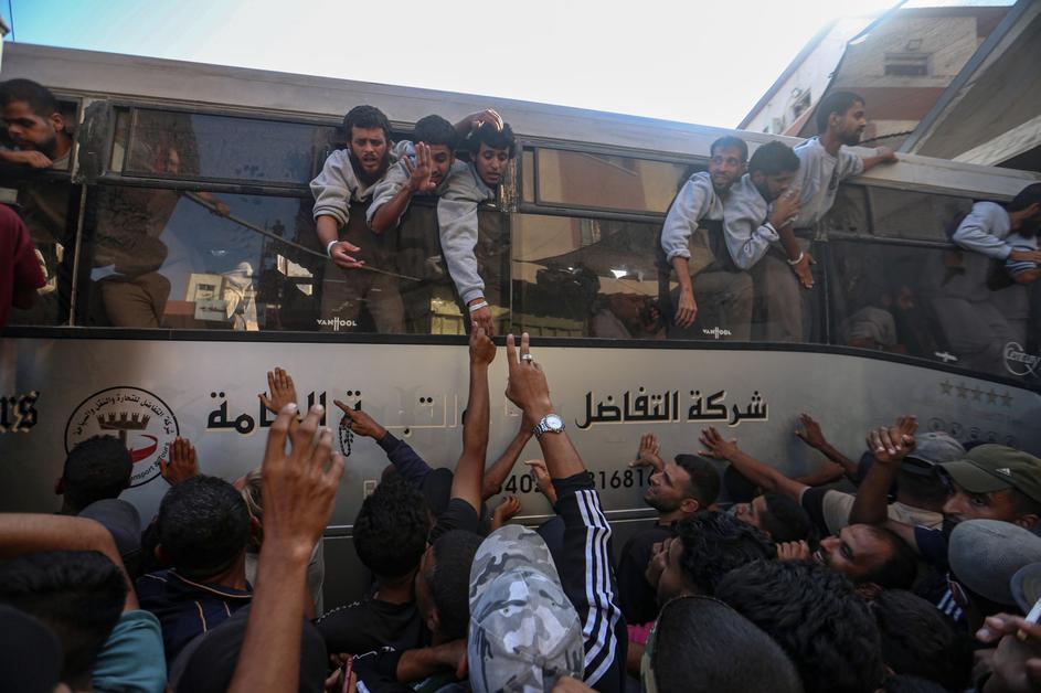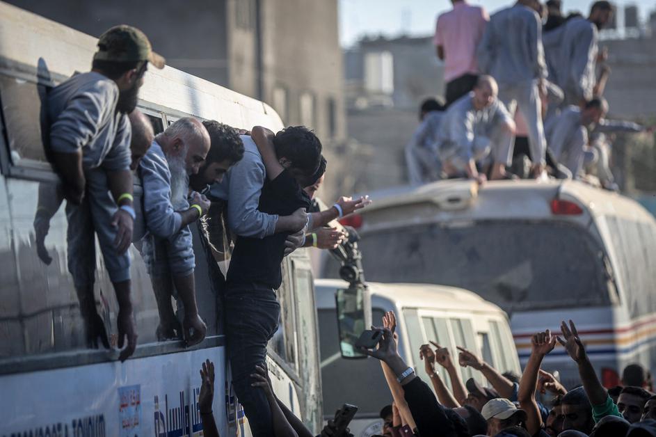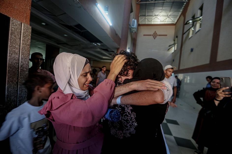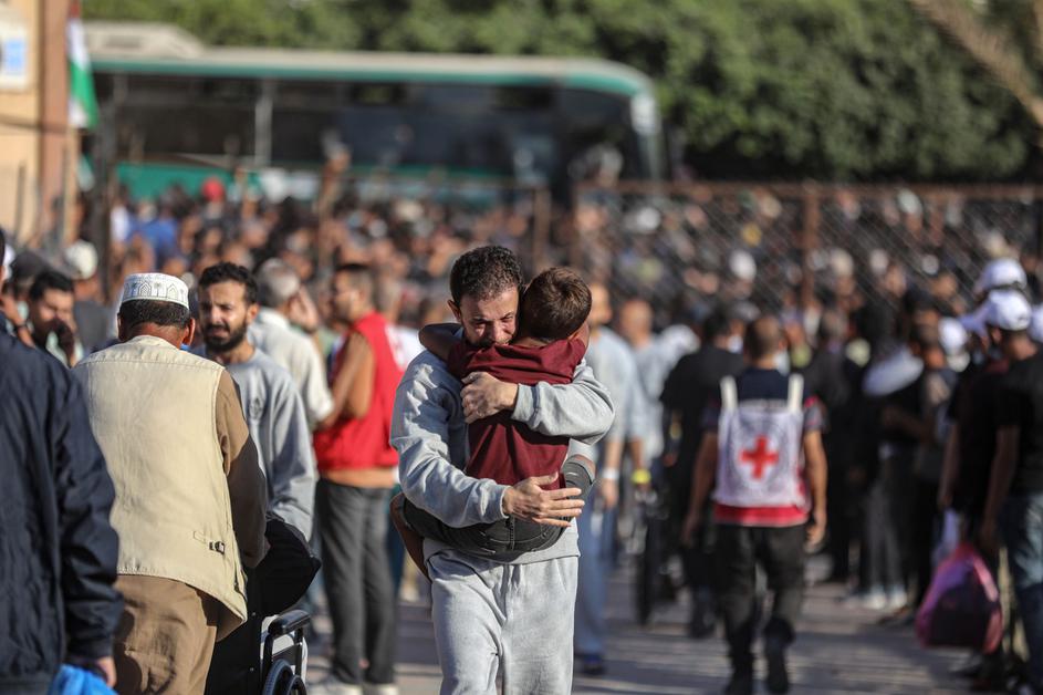 Palestinians released by Israel under the first phase of the ceasefire agreement arrive at Nasser Hospital, Khan Yunis, Gaza Strip, Palestinian Territory - 13 Oct 2025