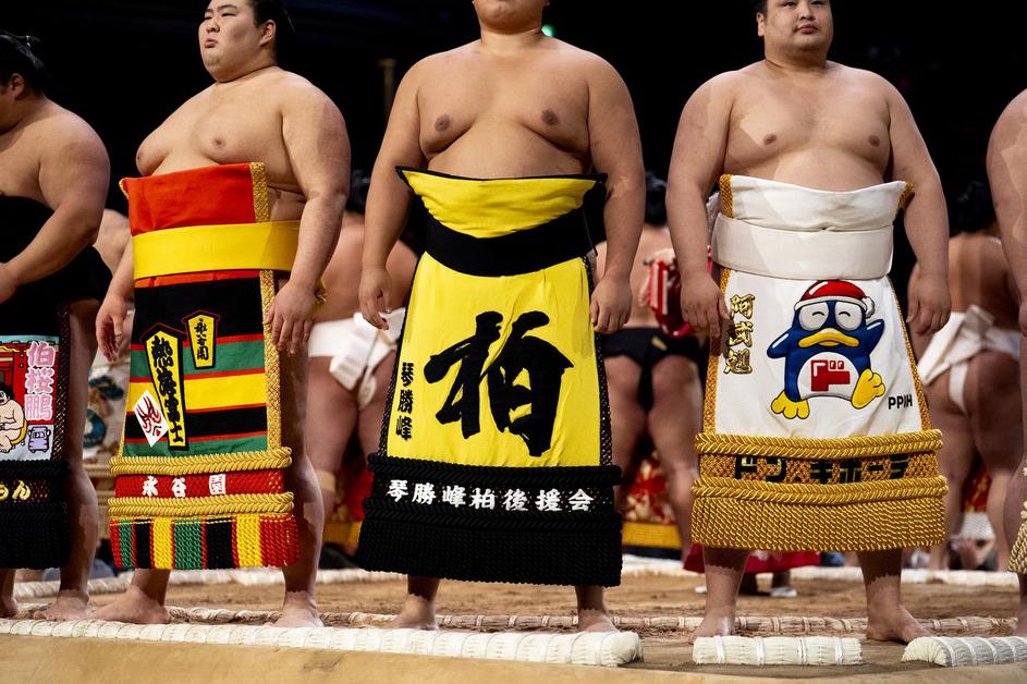 Sumo wrestlers, also known as Rikishi, practice before day two of the Grand Sumo Tournament at the Royal Albert Hall, London. Picture date: Thursday October 16, 2025. Photo: Jordan Pettitt/PRESS ASSOCIATION