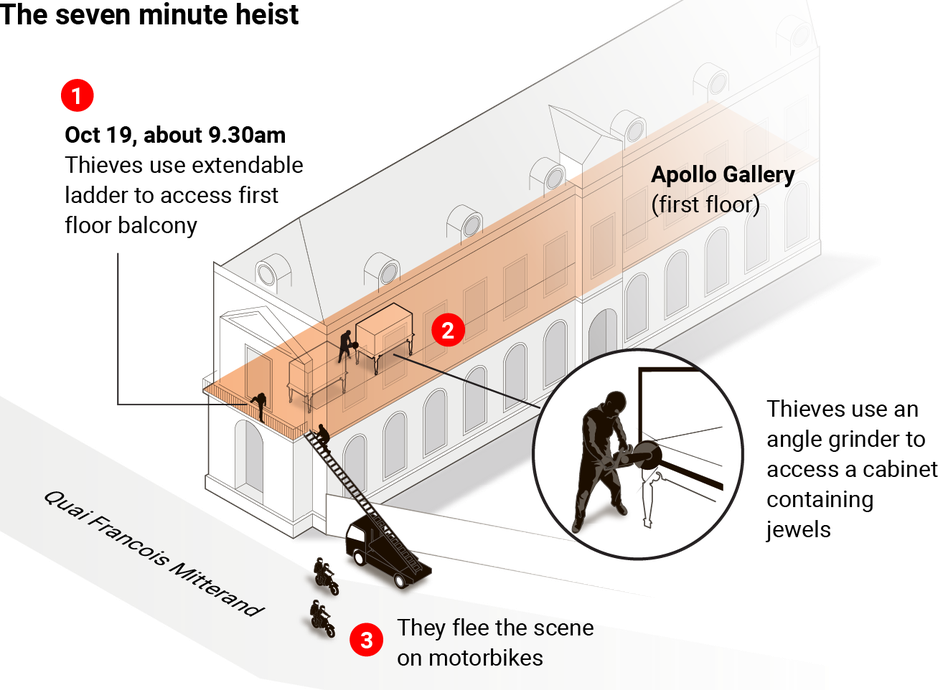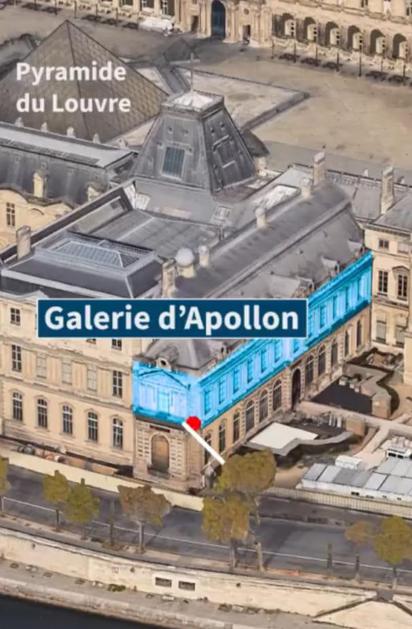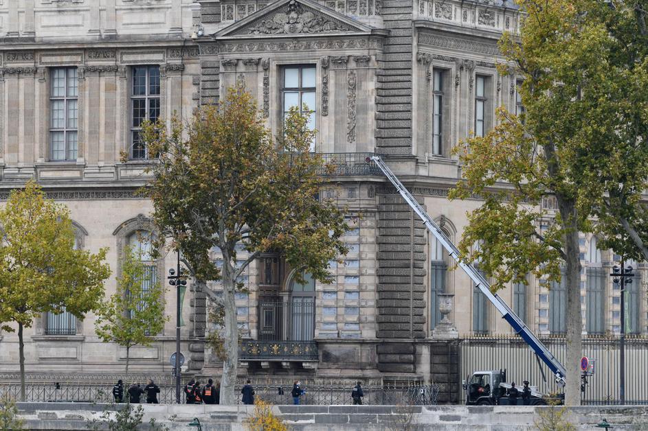 Investigators are on the scene following this morning's robbery at the Louvre Museum in Paris, at the possible location where the thieves entered the museum with a cherry picker this morning. According to the Home Secretary, three or four criminals arrive