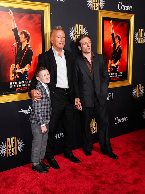 Bruce Springsteen and cast members Jeremy Allen White and Matthew Anthony Pellicano attend a premiere for the film "Springsteen: Deliver Me from Nowhere" during AFI Fest in Los Angeles, California, U.S., October 22, 2025. REUTERS/Mario Anzuoni Photo: MARIO ANZUONI/REUTERS