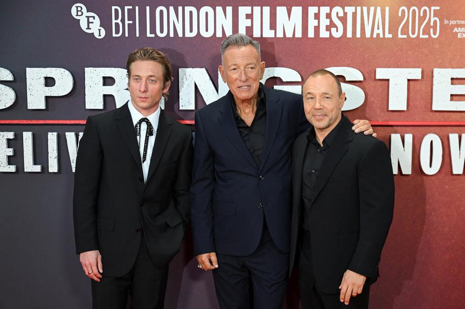 Jeremy Allen White, Bruce Springsteen and Stephen Graham attend the premiere of "Springsteen: Deliver Me from Nowhere" at the London Film Festival in London, Britain, October 15, 2025. REUTERS/Jaimi Joy Photo: JAIMI JOY/REUTERS