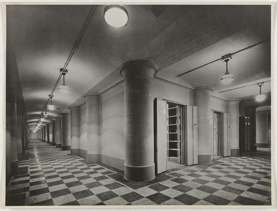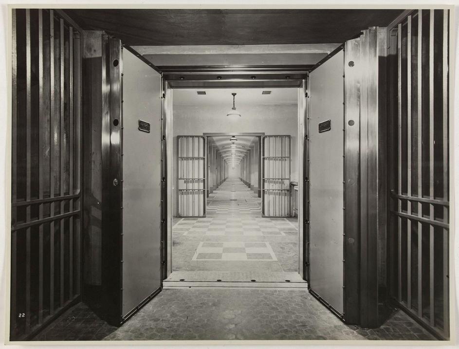 Living underground / door access to the strong group rooms. gateway to the group of vaults, underground room of the Banque de France Porte d'accès au groupe des salles fortes, salle souterraine de la Banque de France. Paris (Ier arr.). Photographie anonym