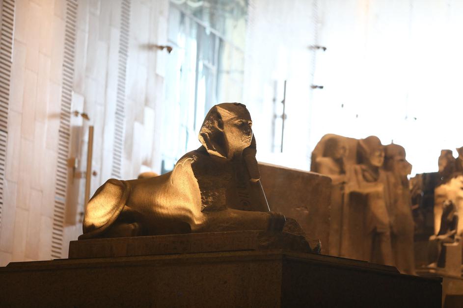 GIZA, EGYPT - NOVEMBER 30: The 'Grand Staircase' at the Egyptian Museum is being introduced to press members before its opening date to the visitors on 1st of December in Giza, Egypt on November 30, 2023. The staircase area of the museum contains more than 70 artifacts from ancient Egypt that is built over an area of 6 kilometers. There are 4 themes at the 'Grand Staircase', which are the kings, gods, the relationship between kings and gods and the death of kings. Fareed Kotb / Anadolu,Image: 825673030, License: Rights-managed, Restrictions: , Model Release: no