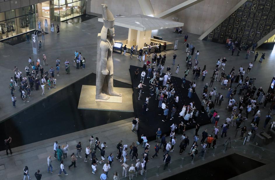 (FILES) Visitors tour the Grand Egyptian Museum in Giza on the southwestern outskirts of the capital Cairo on May 5, 2025. With much pomp and circumstance, Cairo is due to inaugurate on November 1 the long-awaited Grand Egyptian Museum, widely presented as the crowning jewel on authorities' efforts to overhaul the country's vital tourism industry.,Image: 1049340182, License: Rights-managed, Restrictions: , Model Release: no