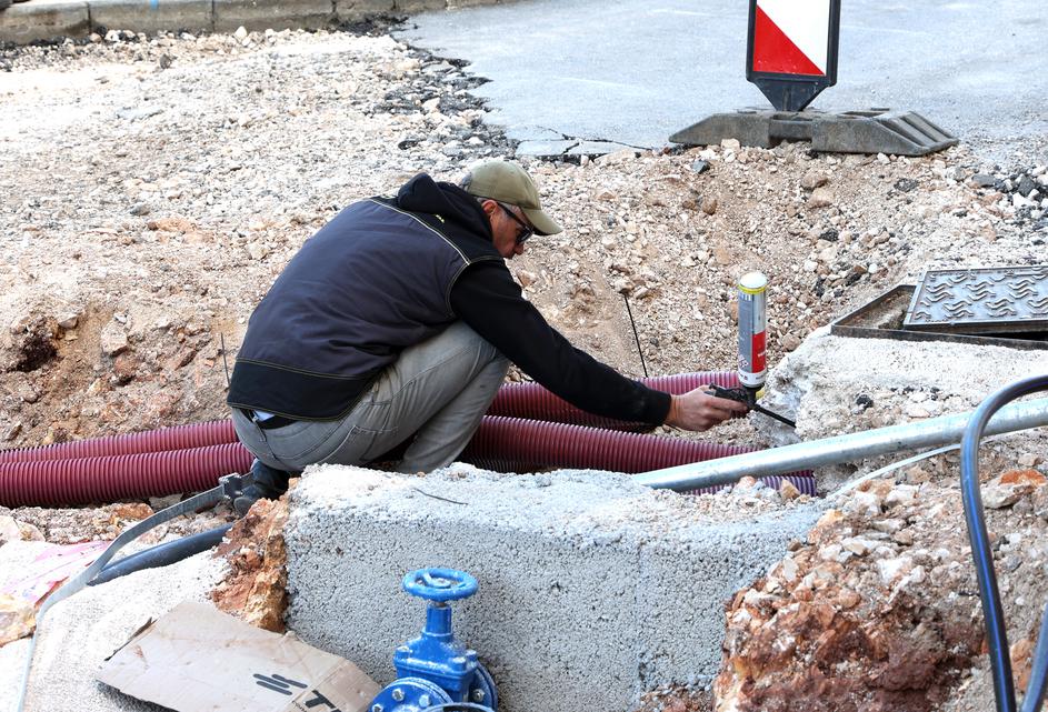 02.10.2025., Sibenik --Nastavljeni su radovi na obnovi ulice Vladimira Nazora u centru grada. Photo: Dusko Jaramaz/PIXSELL