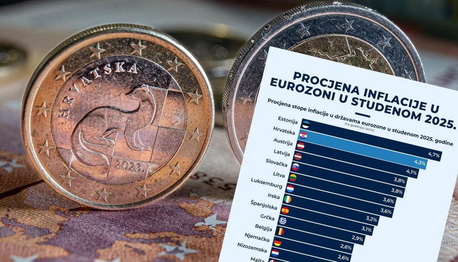 Prema najnovijim procjenama Eurostata, prosječna stopa inflacije u eurozoni u studenom 2025. godine iznosi 2,2 posto što je za 0.1 više nego prethodnog mjeseca. Na Prvom mjestu nalazi se Estonija s inflacijom of 4,7 posto, slijedi Hrvatska s visokih 4,3 posto i Austrija s 4,1 posto. Latvija je od prošlog mjeseca s prvog mjesta pala na četvrto s 3,8 posto.. Među zemljama s najnižom inflacijom izdvajaju se Finska s tek 1,4 posto, Italija s 1,1 posto i Francuska s 0,8 posto. Photo: Marko Picek/PIXSELL