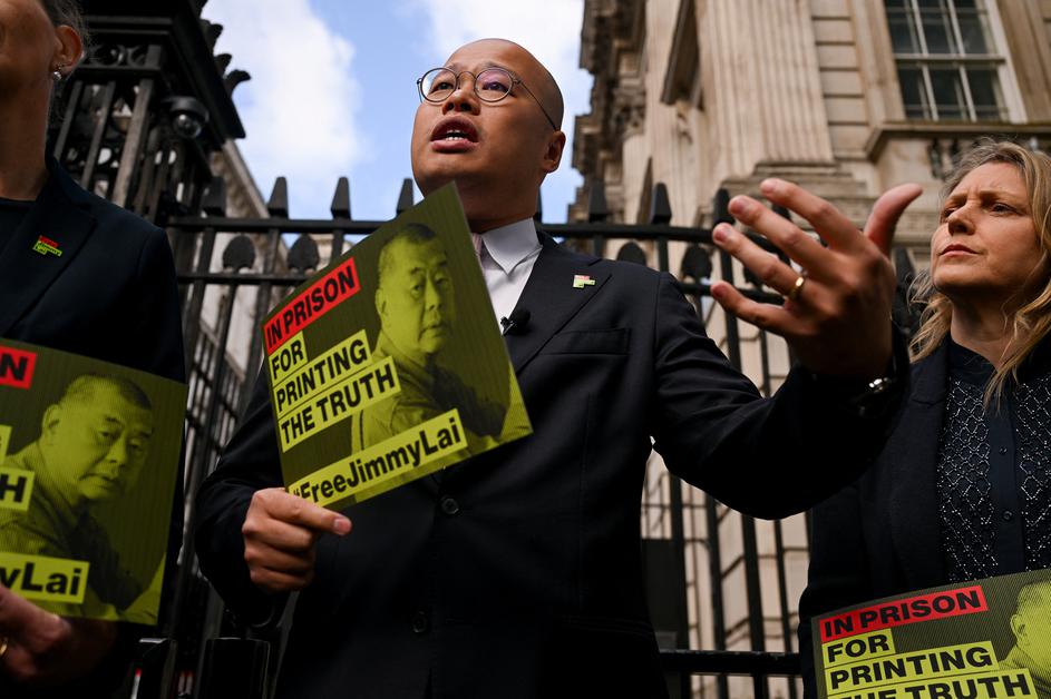 Sebastien Lai, son of jailed media tycoon Jimmy Lai, speaks outside 10 Downing Street in London, Britain, September 15, 2025. REUTERS/Jaimi Joy Photo: JAIMI JOY/REUTERS