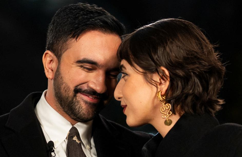 Zohran Mamdani, alongside his wife Rama Duwaji, on the day he is sworn in as mayor of New York City at Old City Hall Station, New York, U.S., Thursday, Jan 1st 2026. Amir Hamja/Pool via REUTERS