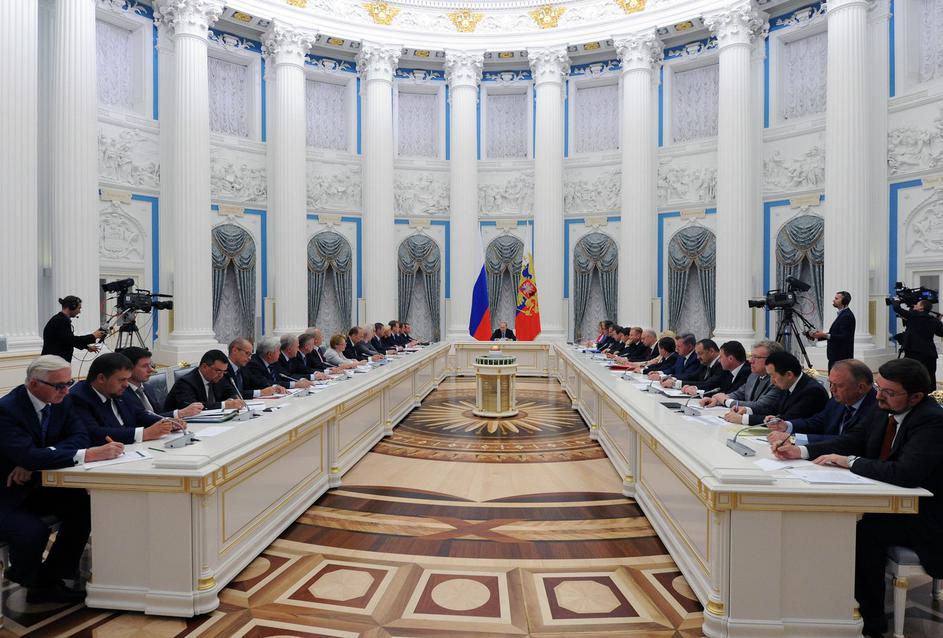 2892368 07/13/2016 July 13, 2016. Russian President Vladimir Putin, center, holds the first meeting of the Council for Strategic Development and Priority Projects in the Kremlin.,Image: 293961025, License: Rights-managed, Restrictions: Editors' note: THIS IMAGE IS PROVIDED BY RUSSIAN STATE-OWNED AGENCY SPUTNIK., Model Release: no