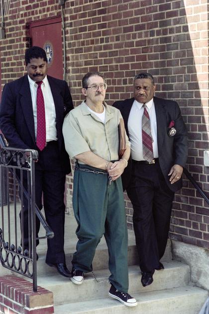 US marshalls escort Aldrich Ames (C) out of federal court 28 April 1994 after he pleaded guilty to espionage and tax evasion charges and was sentenced to life in prison. Ames' wife Rosario Ames pleaded guilty to related, but lesser, espionage charges and will be sentenced 26 August.,Image: 378106850, License: Rights-managed, Restrictions: , Model Release: no