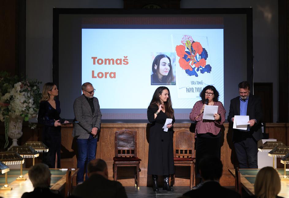 08.01.2026., Zagreb - Dodjela knjizevne nagrade "Fric" u Hrvatskom drzavnom arhivu. Igor Alborghetti, Lara Tomas, Lara Tomas, Natasa Govedic, Kruno Lokotar Photo: Marko Prpic/PIXSELL