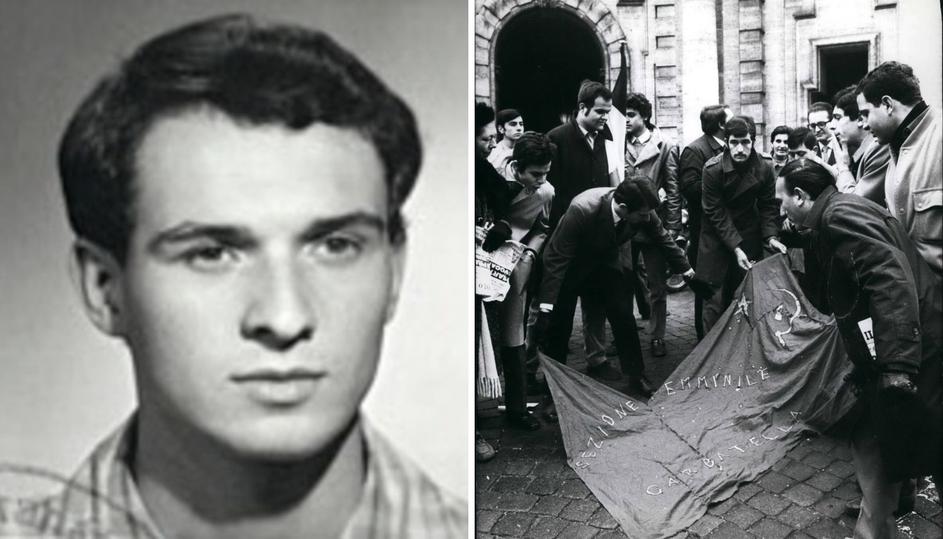 Jan. 01, 1969 - ''Three torches for Liberty'' says one of the signs carried by Roman Students who surged through city street in sympathy with the Czech student martyr Jan Palach. During the march a red flag was dragged in the streets.,Image: 209925800, License: Rights-managed, Restrictions: , Model Release: no