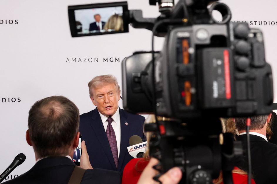 U.S. President Donald Trump speaks with the media as he arrives for the premiere of the documentary film "Melania" at the John F. Kennedy Center for the Performing Arts, recently renamed to include U.S. President Donald Trump's name, in Washington, D.C., U.S., January 29, 2026. REUTERS/Kylie Cooper