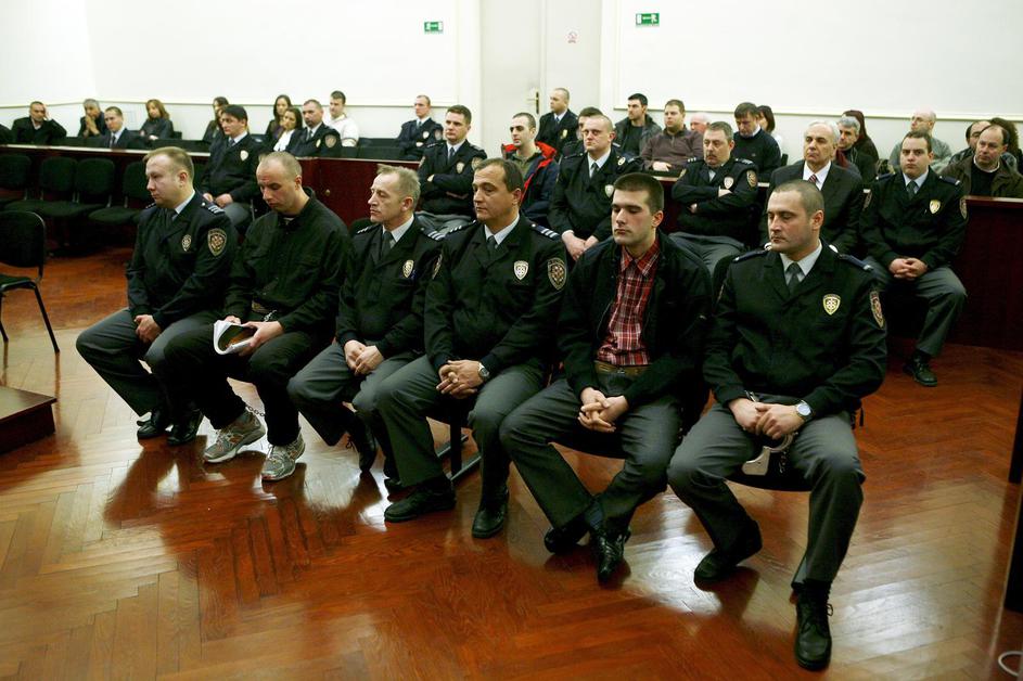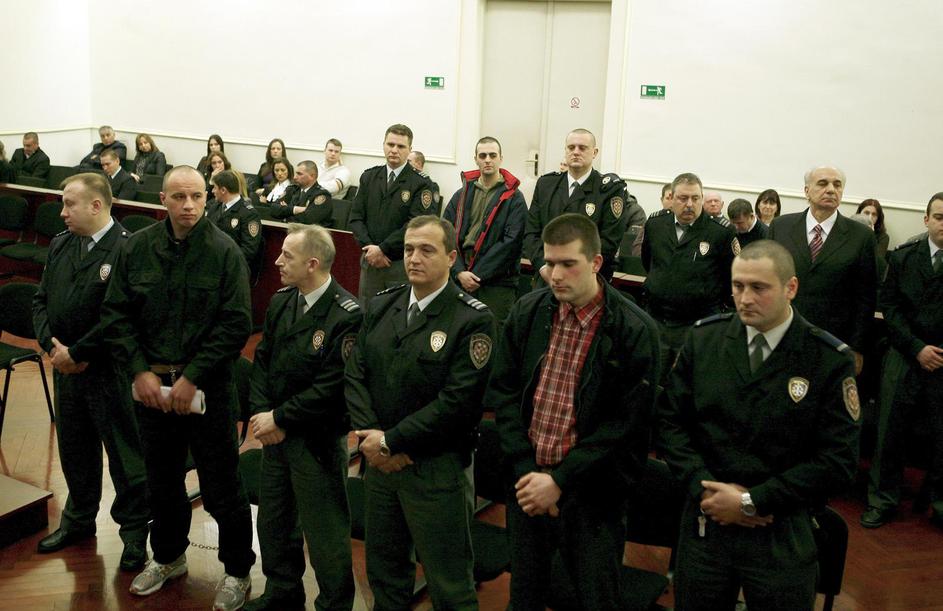 03.02.2010., Zagreb - Zupanijski sud.Pocetak sudjenja prvooptuzenom Robertu Matanicu i drugima za ubojstvo Ive Pukanica i Nike Franjica.Slobodan Djurovic, Robert Matanic,Luka Matanic, Amir Mafalani.rPhoto: POOL/PIXSELL