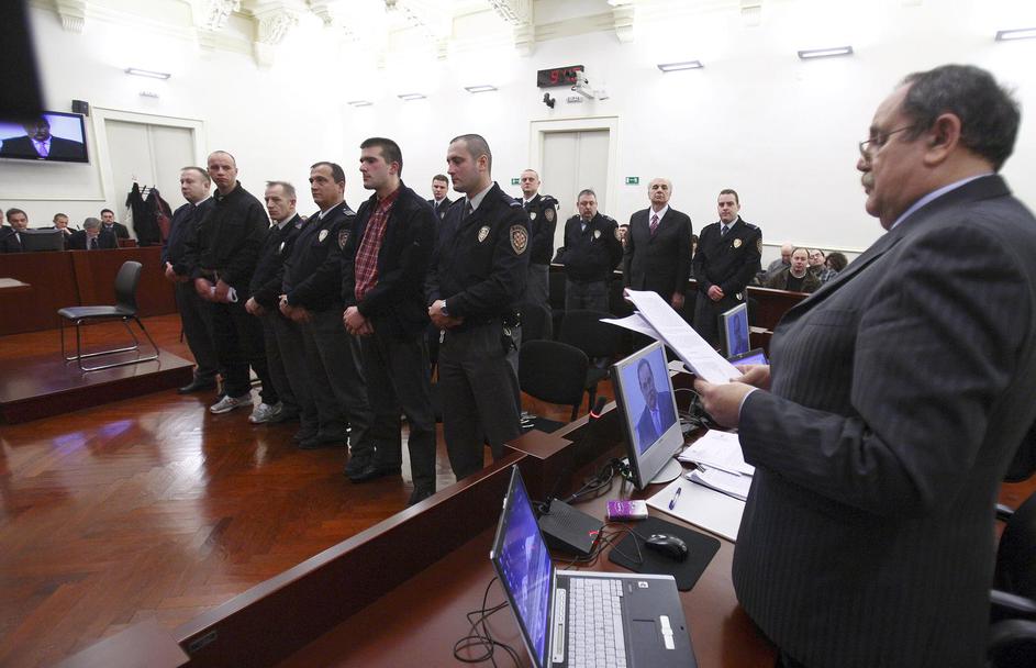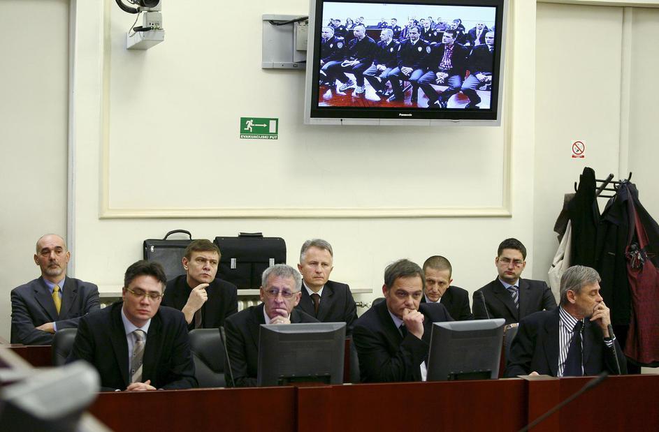 03.02.2010., Zagreb - Zupanijski sud. Pocetak sudjenja prvooptuzenom Robertu Matanicu i drugima za ubojstvo Ive Pukanica i Nike Franjica. Slobodan Djurovic, Robert Matanic,Luka Matanic, Amir Mafalani. Sudsko vijece na celu sa sutkinjom. rPhoto: POOL/PIXSELL