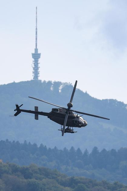 30.07.2025., Zagreb, - Generalna proba svecanog vojnog mimohoda - zracne snage povodom 30. obljetnice VRO Oluja. Generalna proba. Helikopter OH 58D Kiowa Warrior. Photo: Matija Habljak/PIXSELL