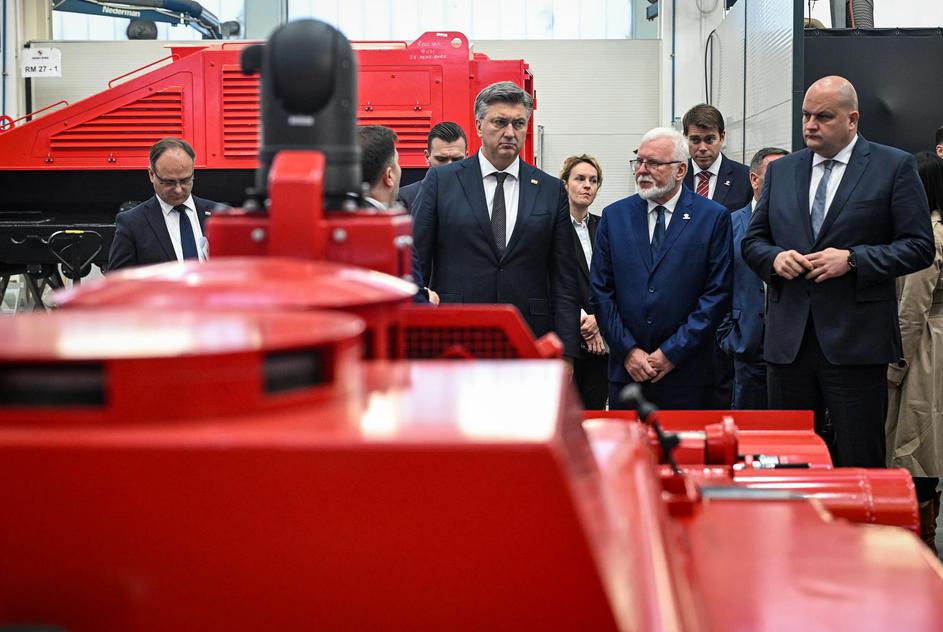 04.11.2024., Zagreb - Ministar gospodarstva Ante Susnjar, predsjednik Vlade Andrej Plenkovic i vlasnik tvrtke DOK-ING Vjekoslav Majetic u obilasku tvrtke DOK-ING d.o.o. Photo: Josip Regovic/PIXSELL