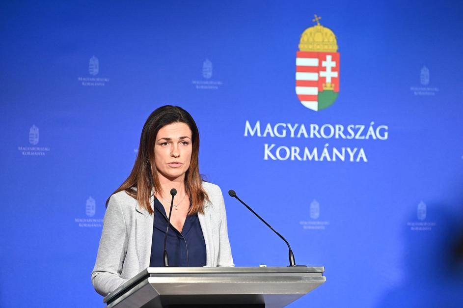 Hungary's Justice Minister Judit Varga addresses a press conference to comment on a decision taken by the European Court of Justice (ECJ) in Budapest, Hungary, on February 16, 2022. The EU's top court rejected a challenge by Poland and Hungary to a mechanism allowing Brussels to slash funding to member states that flout democratic standards. The judgment exposes Poland and Hungary -- seen as democratic backsliders in the 27-nation bloc -- to the risk of seeing money cut from the billions in EU funding they receive.,Image: 662964504, License: Rights-managed, Restrictions: , Model Release: no