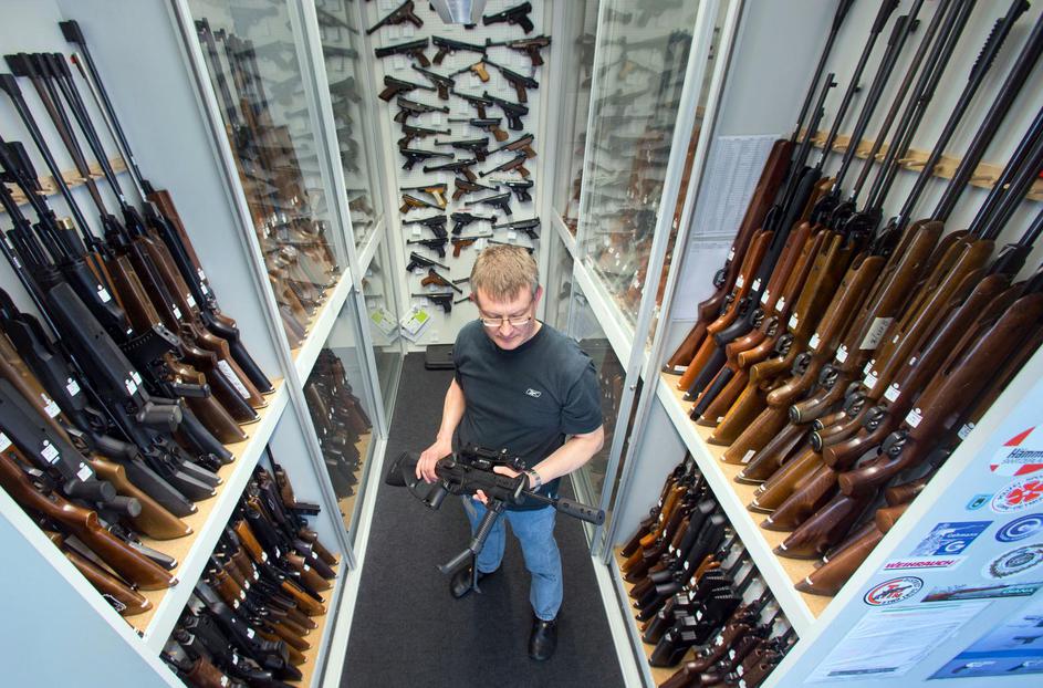 A police officer holds a pneumatic 'Beretta' gun at the armoury of the State Criminal Police Office (LKA) of Mecklenburg-Western Pomerania in Rampe, Germany, 10 April 2014. According to the current arms report of the German state Mecklenburg-Western Pomerania more than 21,000 citizens had a firearms license at the end of 2013. There are currently almost 80,000 guns, rifles, pistols and revolvers stored in private safes in the north-east of Germany. Photo: Jens Buettner /ZB/DPA/PIXSELL