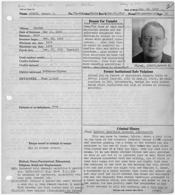 A page from the warden's notebook, featuring a mug shot of Robert Stroud, known as the 'Birdman of Alcatraz,' taken on January 28. This record is part of the prison documentation at Alcatraz.