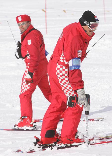 16.02.2006., Torino, Italija - XX Zimske olimpijske igre. Trening Janice Kostelic. Ante Kostelic i Vedran Pavlek postavljaju stazu za Janicin trening."nPhoto: Zeljko Lukunic/PIXSELL