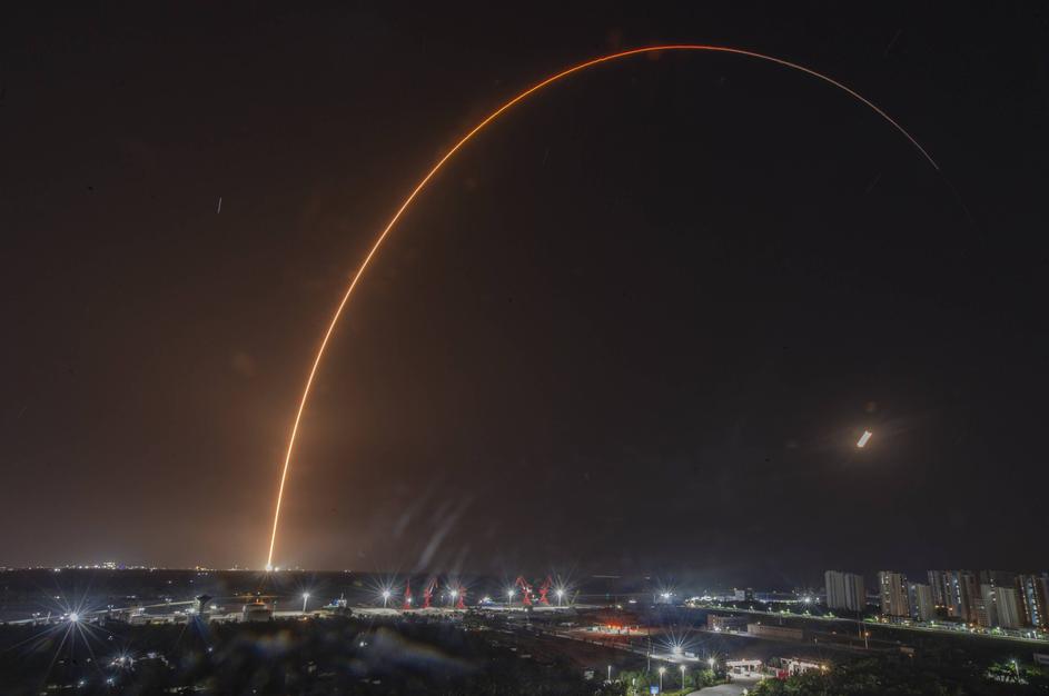 WENCHANG, CHINA - MARCH 13: A Long March-8A carrier rocket carrying a group of internet satellites blasts off from the H
