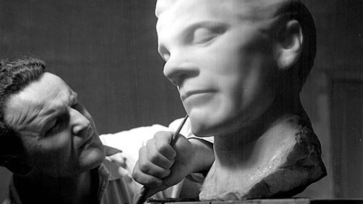 Vojin Bakić izrađuje bistu Ivana Gorana Kovačića (1946.)