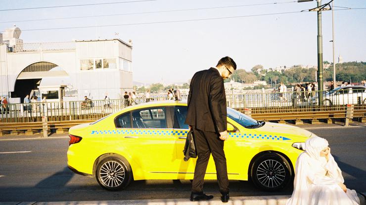 Pomišljam kako bih mogla napisati priču o fotografiji s Galata mosta - žena u bijelom sjedi na zidiću, podbočena rukom, zagledana negdje daleko, leđima okrenuta muškarcu u crnom odijelu čija je pažnja, čini se, usmjerena prema njoj, ali ona pripada nekom drugom univerzumu. Muškarac na fotografiji izaziva osjećaj užurbanosti, uhvaćen je u akciji, pored njega je neon žuti taksi, spreman da krene.